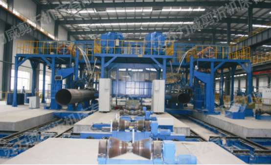 該機用于對內(nèi)焊后的管筒進行外壁焊接。